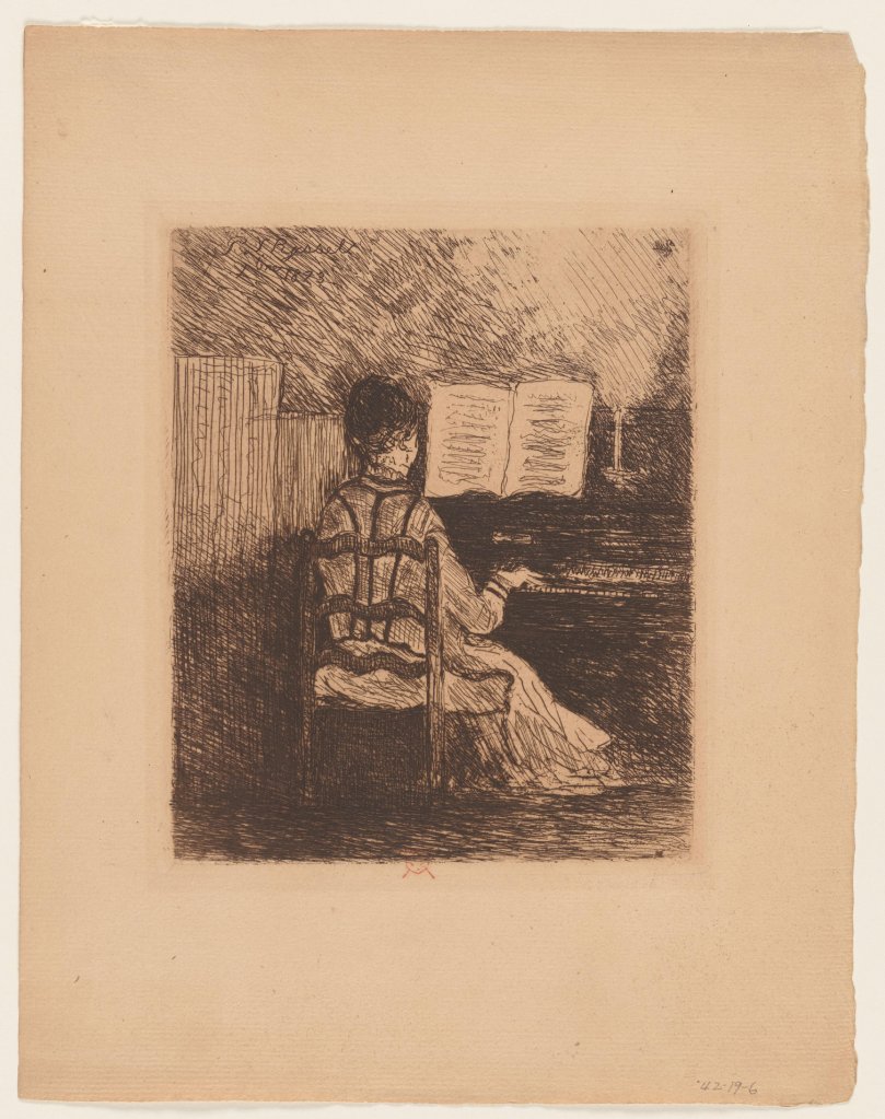 In June of 1890 Vincent van Gogh finished his painting Marguerite Gachet au piano. He had been under the care of Marguerite’s father Dr. Paul Gachet in Auvers-sur-Oise, France for a month. After Dr. Gachet learned that Marguerite, who was 22 at the time, had posed alone for this portrait, he forbad any friendship between her and the painter. Van Gogh had also painted Marguerite in her garden shortly before. One month later the painter committed suicide in Auvers-sur-Oise at the age of 37.