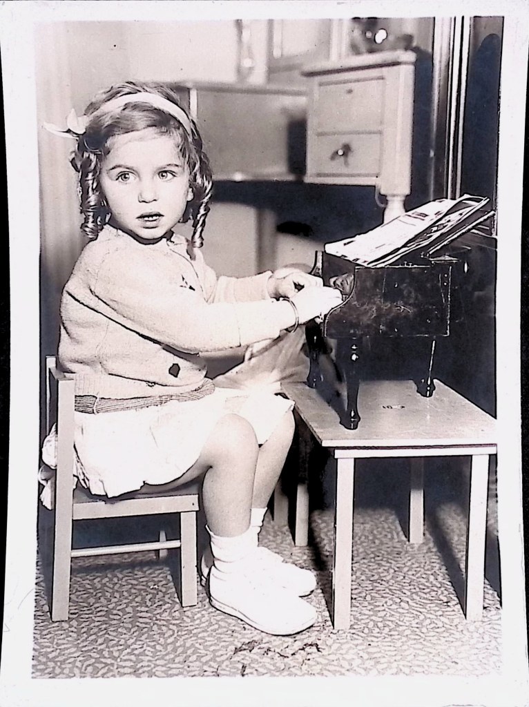 Few people can recite 35 poems, which 2-year-old Theresa McGinty from Brooklyn can do without difficulty. Among the poems are not only children’s songs, but also a 22-line poem from a newspaper. The little girl can recite this poem without hesitation. Our picture shows little Theresa singing a little song, accompanying herself on her Lilliput piano.